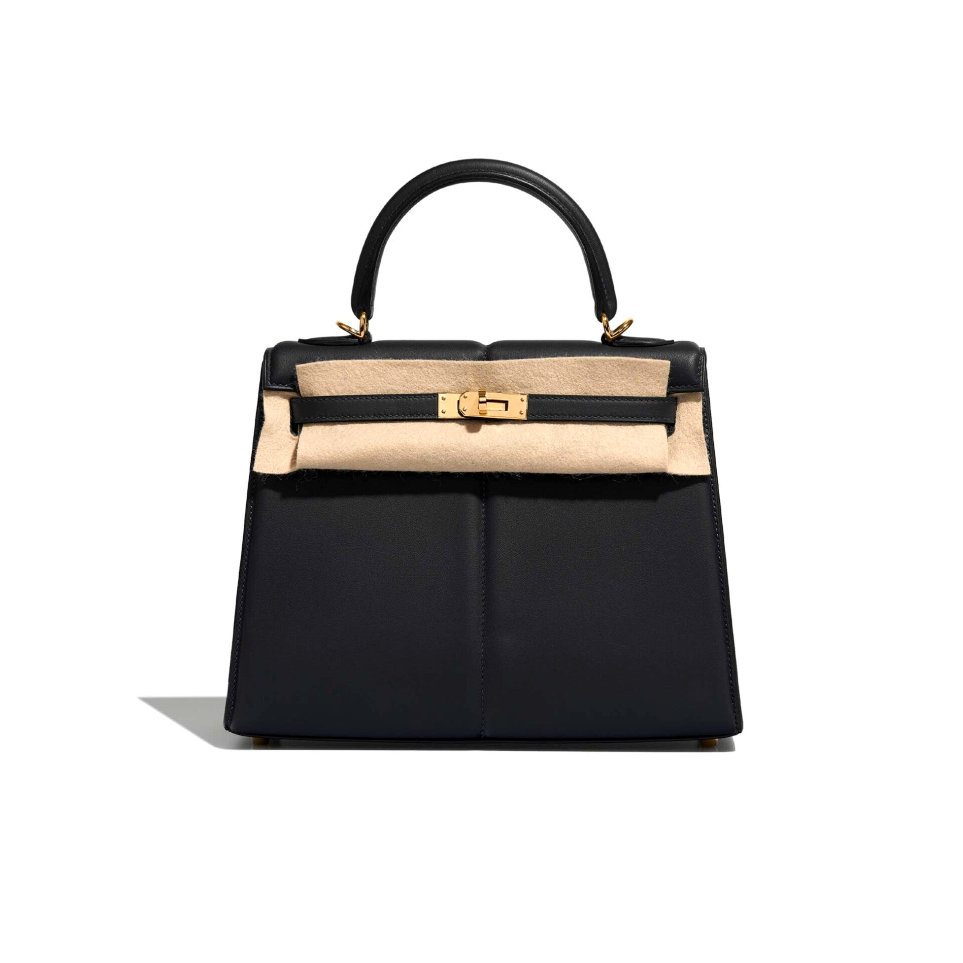 Distinguished by its padded construction, this Kelly introduces a soft, sculptural dimension to the traditionally structured form. The quilted effect adds volume and tactile richness, lending the bag a contemporary, almost avant-garde character while preserving the Kelly’s unmistakable identity. Compact yet commanding, the Kelly 25 size ensures versatility without compromising presence.