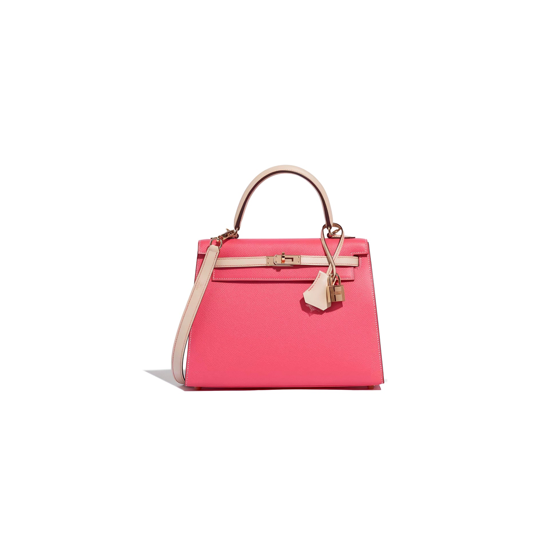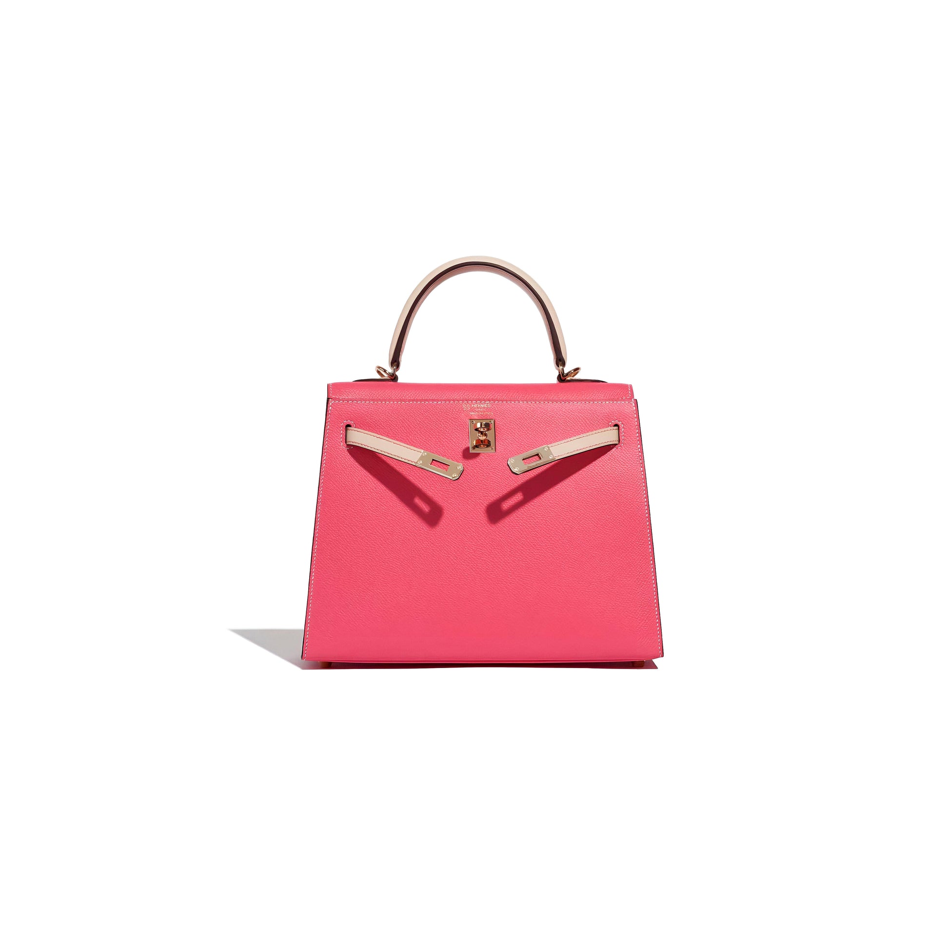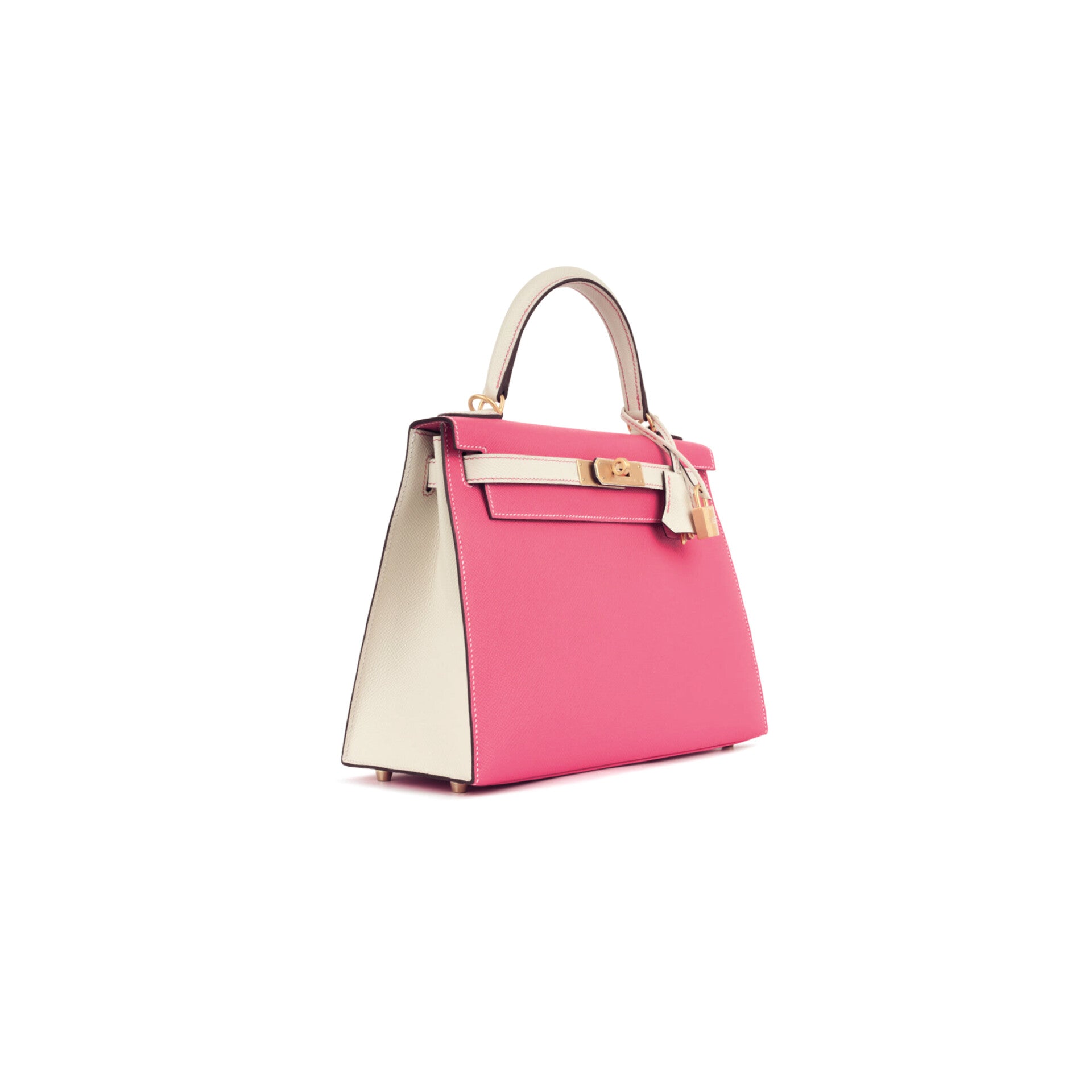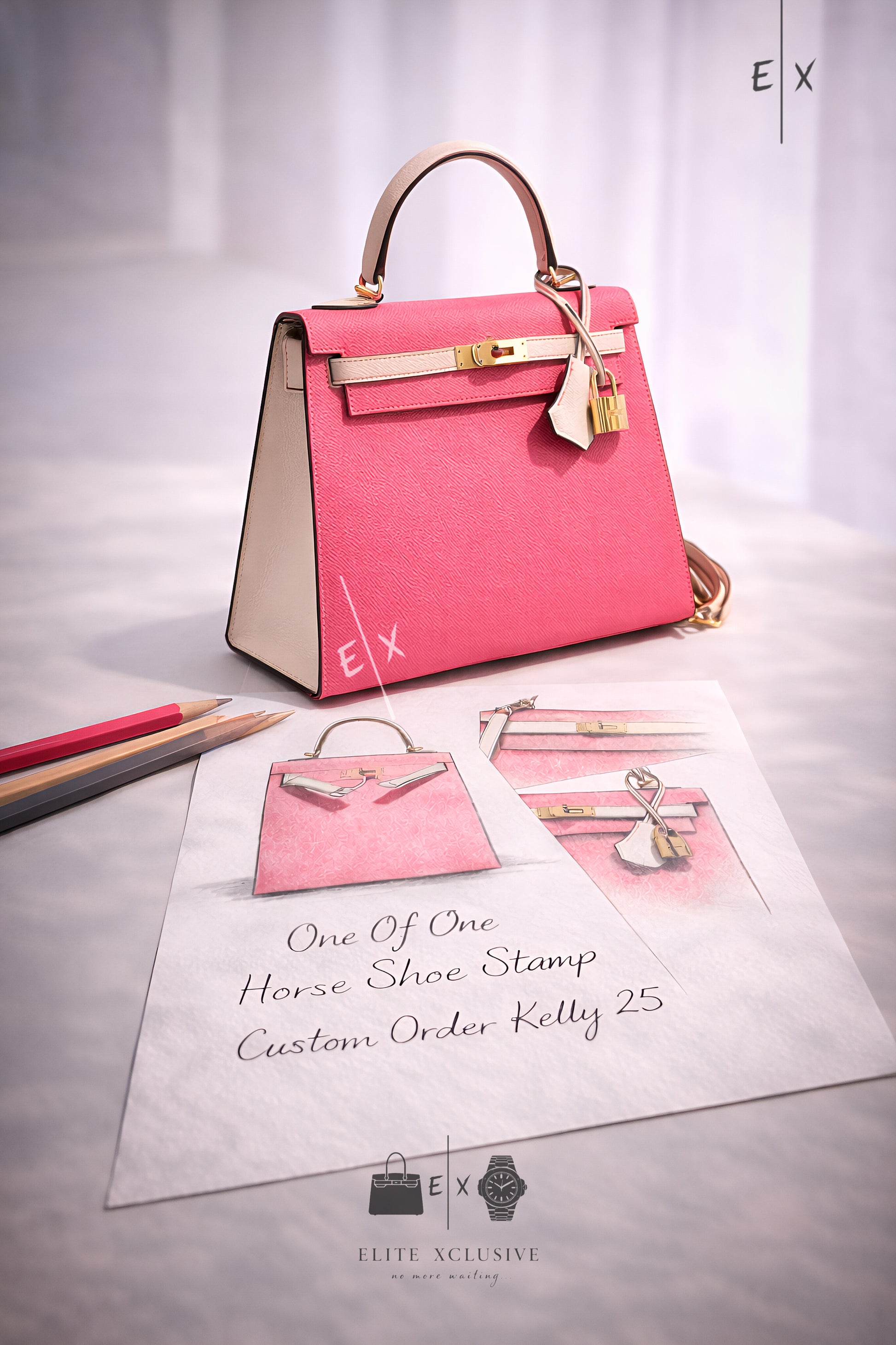 The Kelly 25 silhouette provides the architectural canvas. Its compact proportions sharpen the visual contrast between the two Epsom leathers, allowing the geometry of the bag to become part of the design language. Brushed matte gold hardware softens the structure with a muted glow, deliberately avoiding overt shine in favor of quiet authority. The result is balanced tension: crisp yet sensual, restrained yet unmistakably expressive.