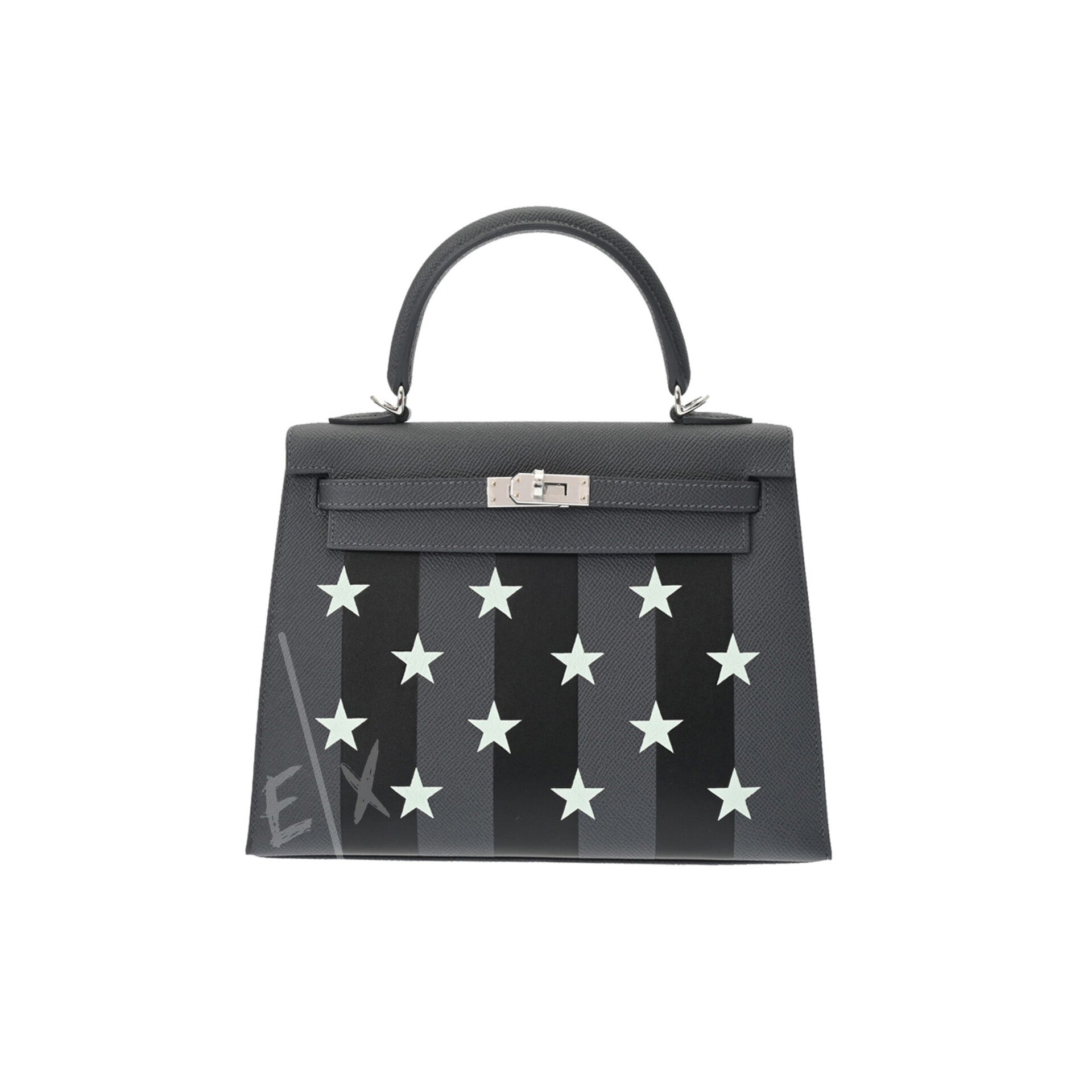 Crafted in structured Epsom leather, this Kelly is distinguished by its bold star motif detailing, set against a refined grey base with contrasting vertical accents. The graphic design brings a modern, almost couture-like energy to the classic Kelly silhouette, while preserving the maison’s unmistakable elegance.